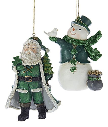 -. Binding : Kitchen -. Brand : Kurt Adler -. EAN : 0086131380952 -. Feature : Set of 2 ornaments / Made of resin / Wonderfully detailed / Perfect Irish accent for the holidays -. Label : Kurt Adler -. Manufacturer : Kurt Adler -. Model : YAMC7127 -. MPN : YAMC7127 -. PackageQuantity : 1 -. PartNumber : YAMC7127 -. ProductGroup : Home -. ProductTypeName : HOME -. Publisher : Kurt Adler -. Studio : Kurt Adler -. Title : Kurt Adler 4.5" Resin Irish Snowman and Santa Ornaments, Set of 2 -. UPC : 086131380952