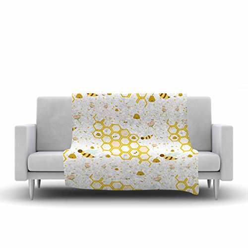 KESS InHouse Stephanie Vaeth "Honey Bees" White Yellow Fleece Throw Blanket, 60 by 50-Inch, 60" X 50""