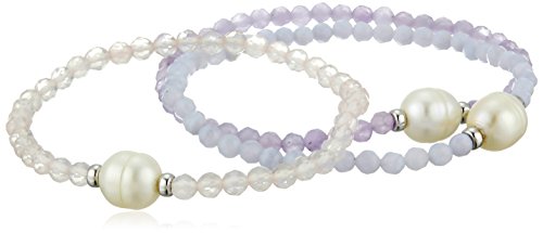 -. Title : Freshwater Cultured Pearl 10 - 11mm with Barrel Crystals Strand Stretch Bracelet