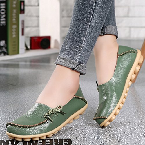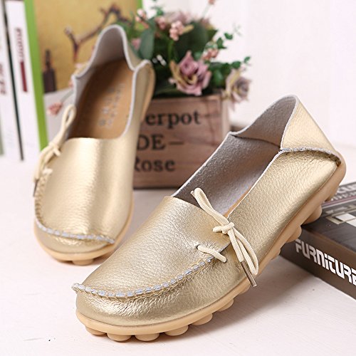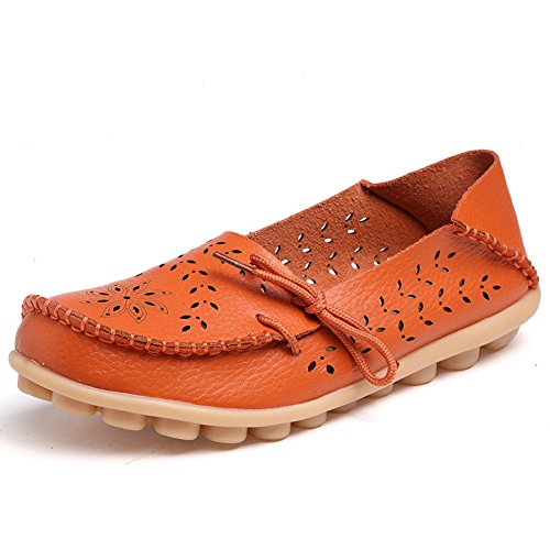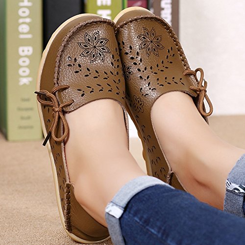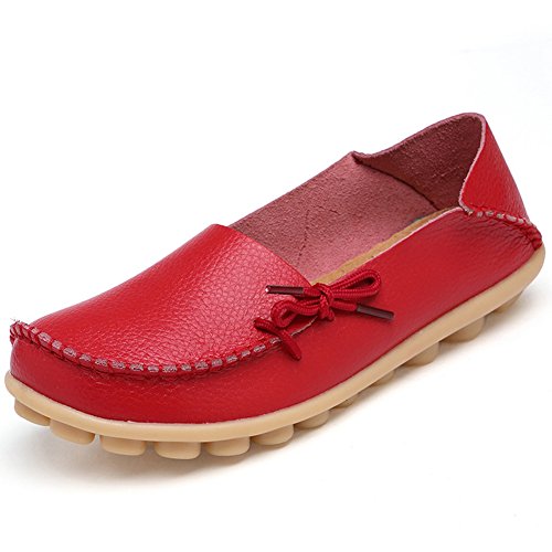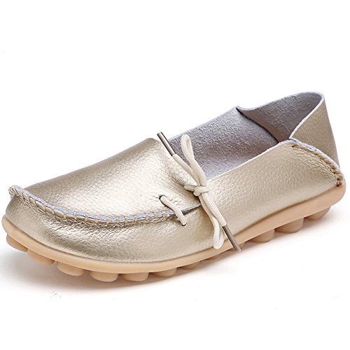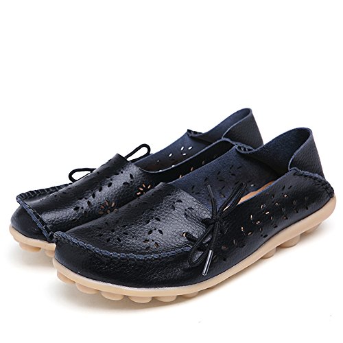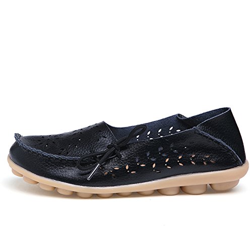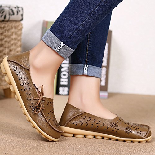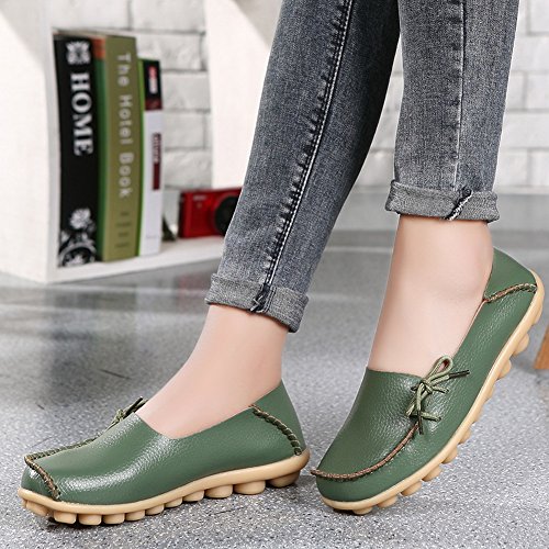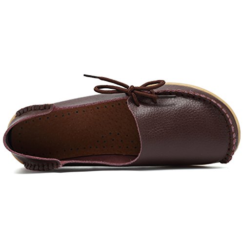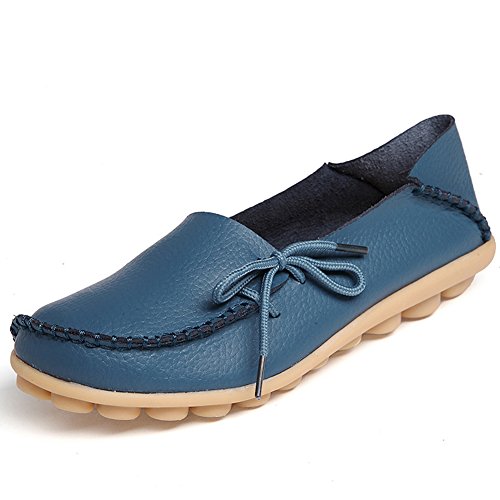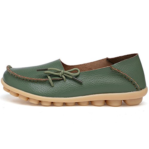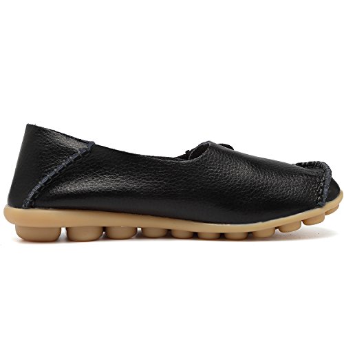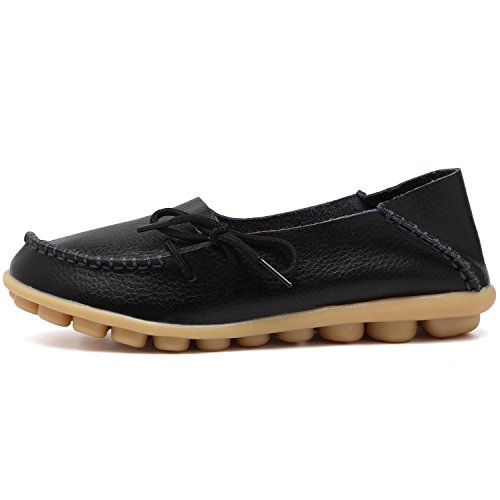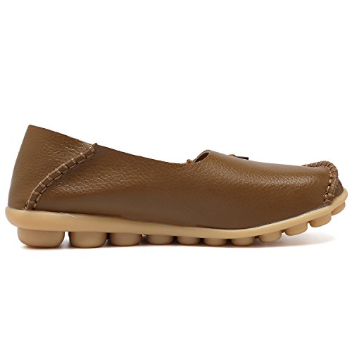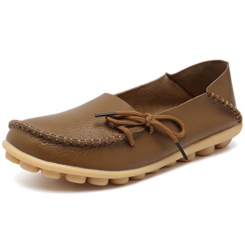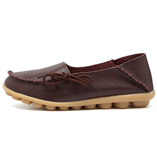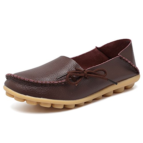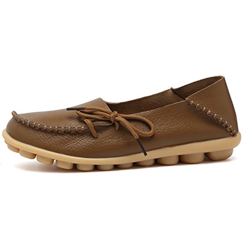 | EQUICK Women' s Leather Loafers Casual Moccasin Driving Outdoor Shoes Indoor Flat Slip-On Slippers |