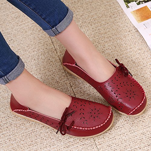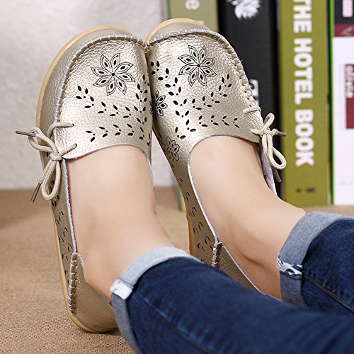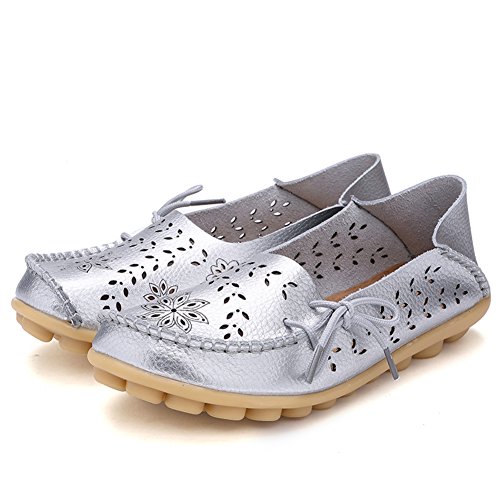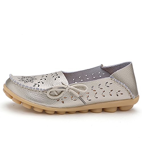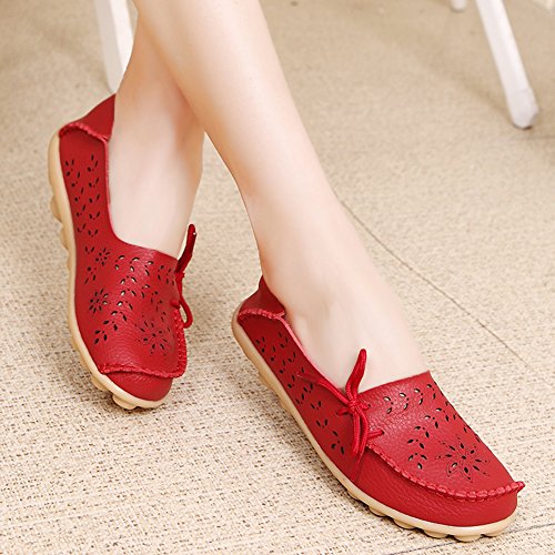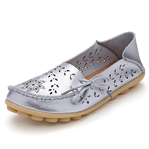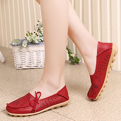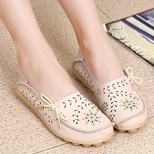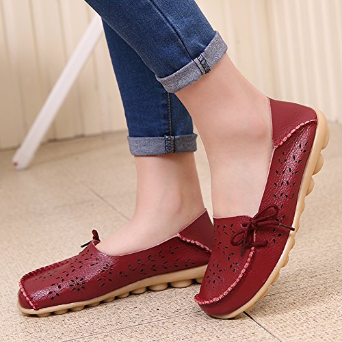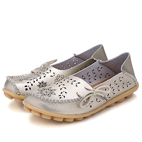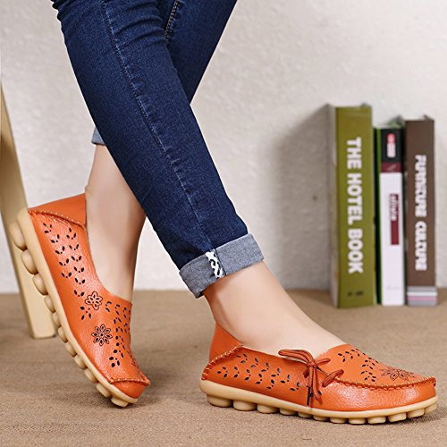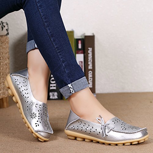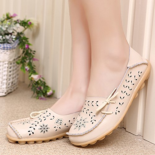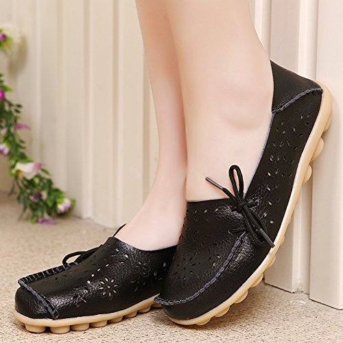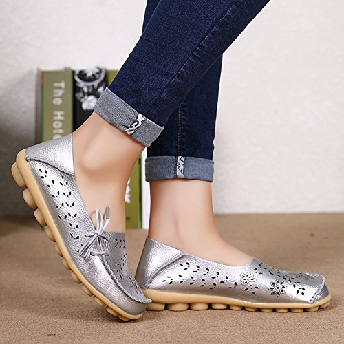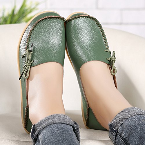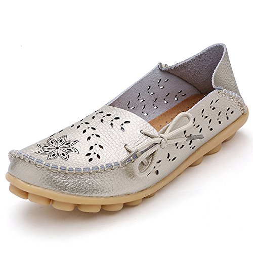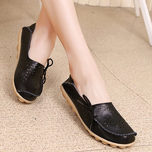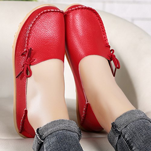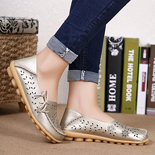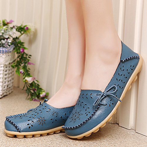 | EQUICK Women' s Leather Loafers Casual Moccasin Driving Outdoor Shoes Indoor Flat Slip-On Slippers |