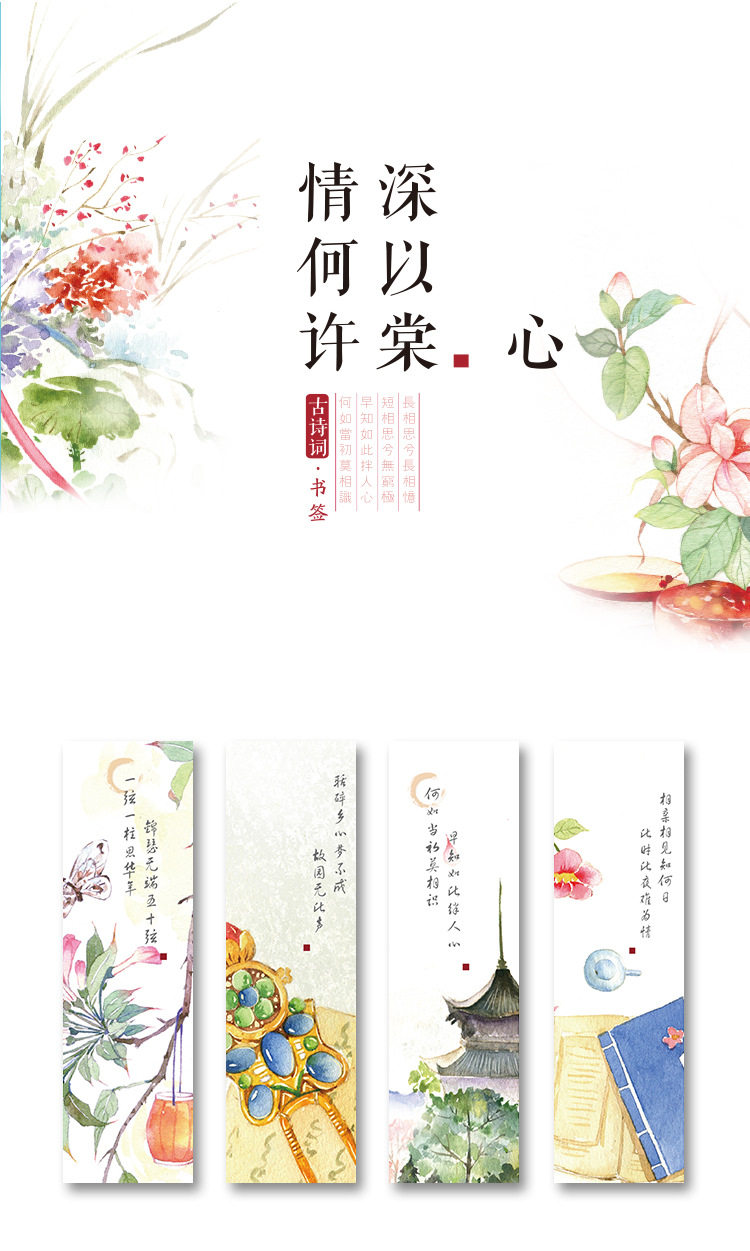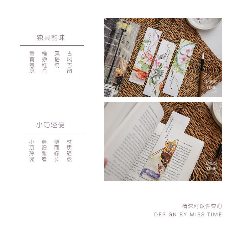 文艺复古纸质书签《情深何以许棠心》diy留言小卡片30张