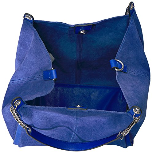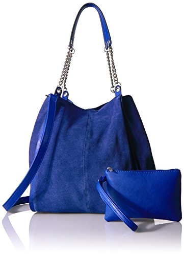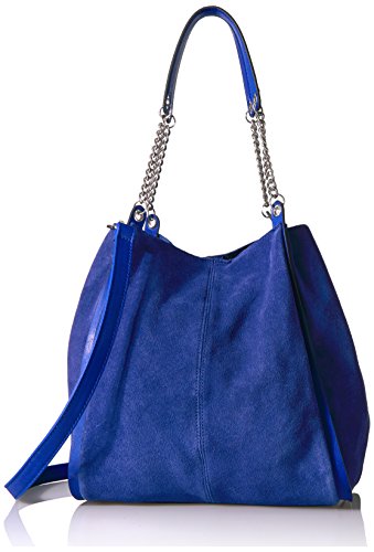 Slouchy hobo-style tote in suede featuring leather trims and chain handles