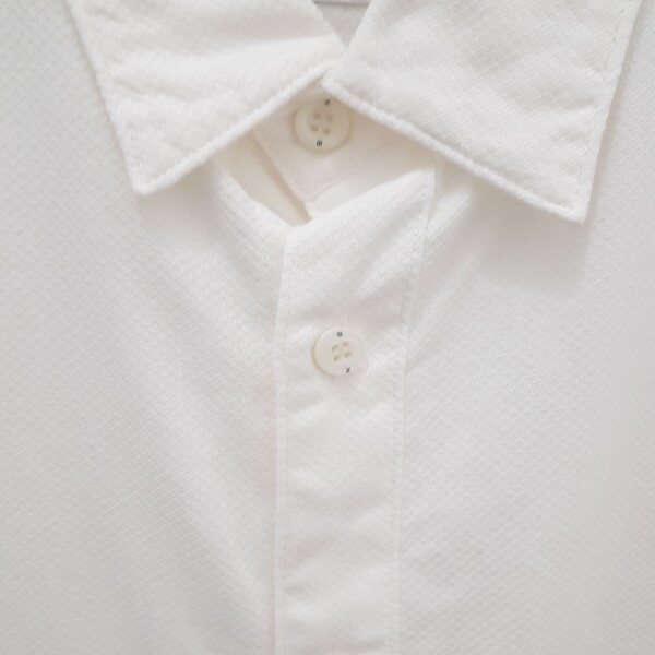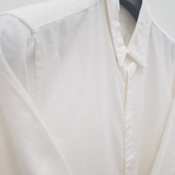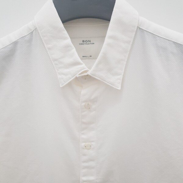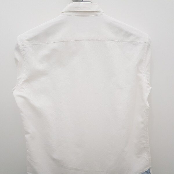 아이보리칼라 바탕에서 밑단의 블루칼라와의 콜라보캐주얼 디자인.약간의 잔체크로 짜임있게 디자인되었고,버튼또한 캐주얼스럽게 나왔습니다.(사진은 화이트로 보일수도 있다는점 참고바랍니다.)