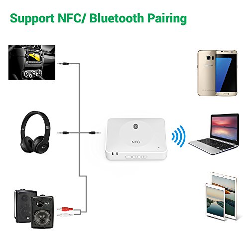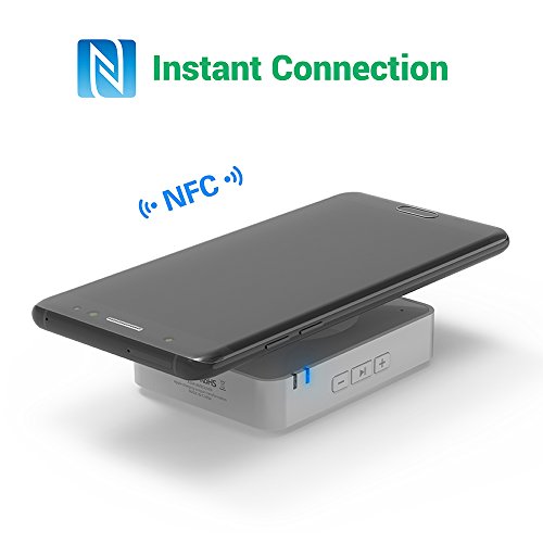 This Bluetooth audio receiver can connect with any Bluetooth enabled devices to play the music. We also offer a new NFC function that will amplify the audio of your NFC-capable smart devices with a simple hand gesture--simply touch your smartphone or tablet to the bluetooth adapter and connect immediately.
