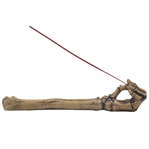 Bone Chilling Skeleton Arm and Hand Incense Stick Holder Display Stand Figurine for Scary Halloween Decorations or Medieval Art & Gothic Home Decor Aromatherapy Incense Burners As Spooky Fantasy Gifts