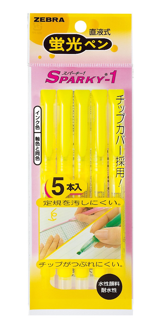 Zebra highlighter fluorescent Sparky 1 P-WKP1-Y5 yellow 5 pieces