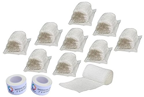 Kit contains 10 top selling Sterile, 4.5" x 4.1yds, 6-ply Dukal fluff bandage roll plus 2 rolls of Vakly medical tape.