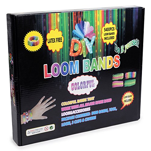 Loom Band 5400 Band Kit with Loom Board, Weaving Tool, S Clips and Charms