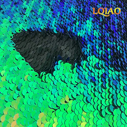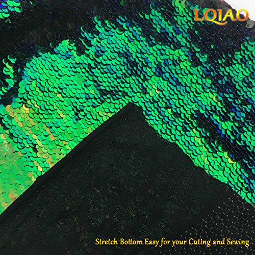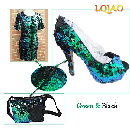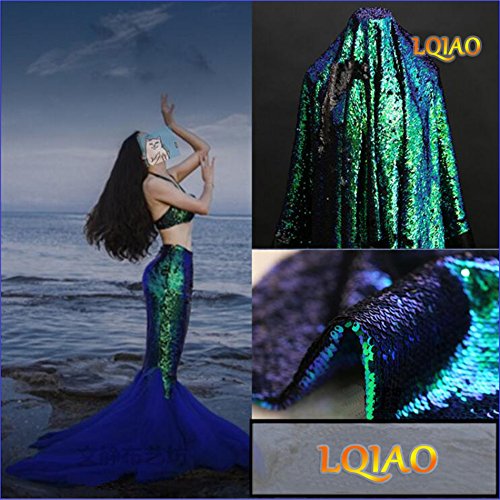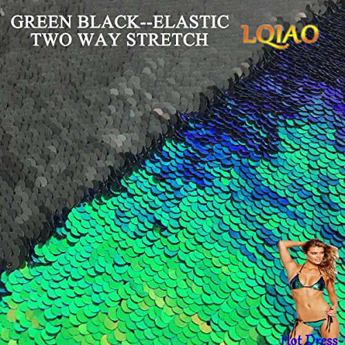 SIZE: An half of yard Length(45cm to 48cm), width around 120cm to 125cm, Green Blue Black Reversible Sequin Fabric(More Quantity and Color demand, just message me, Wholesale Discount is possible)