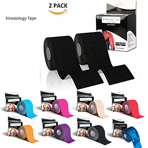 Kinesiology Tape Knee Pregnancy- Waterproof Pain Relief Sports Tape -Physio Tape for Injury Knee Feet Muscle Strains Neck Shoulder Ankle- 5cm x 5m roll(2 Pack or 1 Pack)