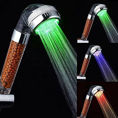 LED Shower Head Magic Negative Ionic Filter Chlorine 3 Colors Changes with Changing Water Temp Bathroom LED Light Top Spray Shower Head