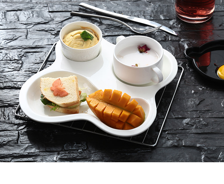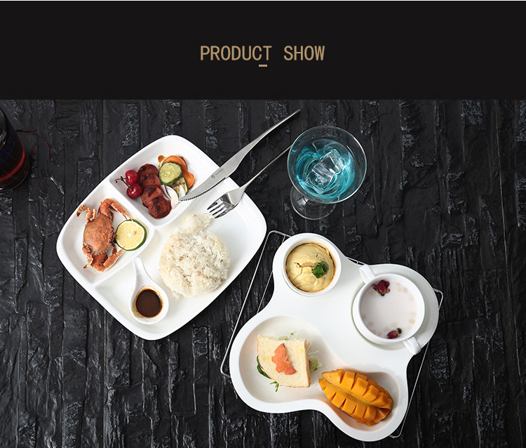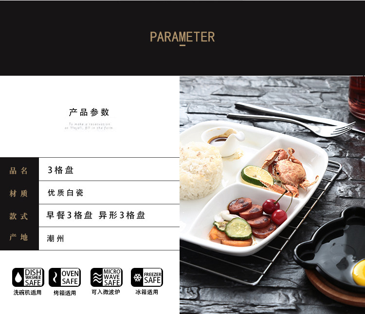 欧式创意陶瓷分格早餐盘高档西餐盘牛排盘饭盘子点心盘水果三格盘