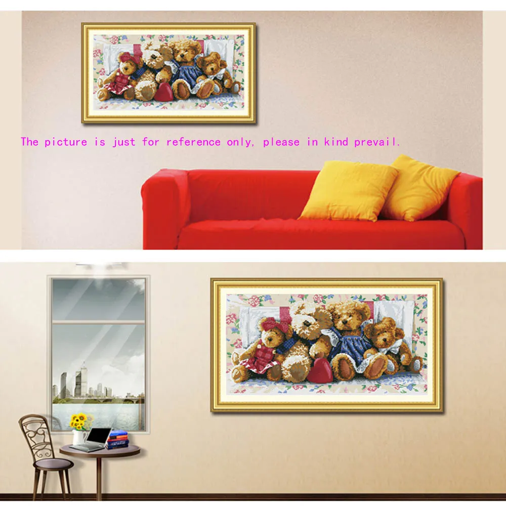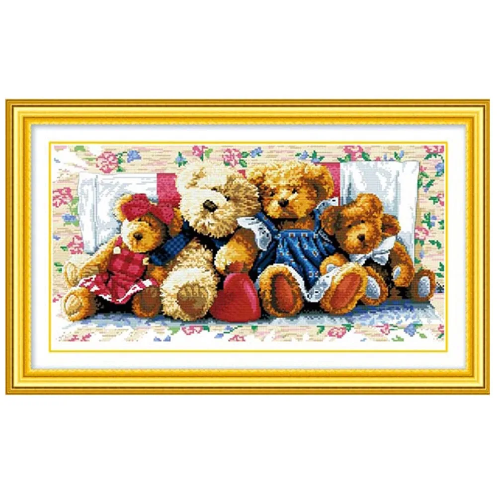 DIY Handmade Needlework Cross Stitch Kit Set Embroidery Precise Printed Bear Family Design Cross-Stitching Home Decoration