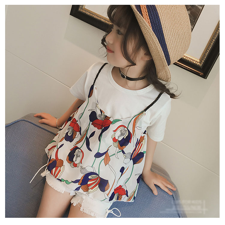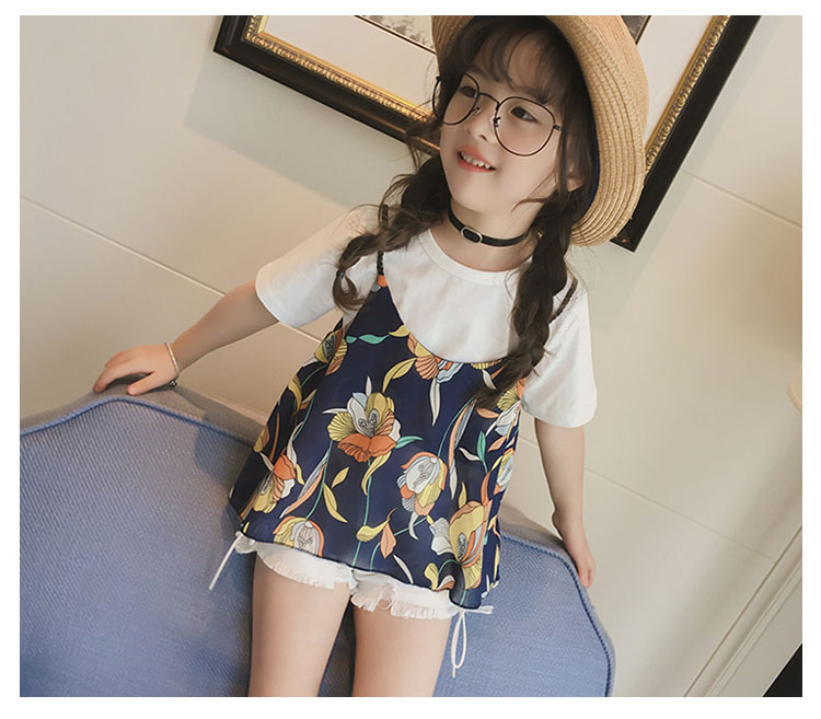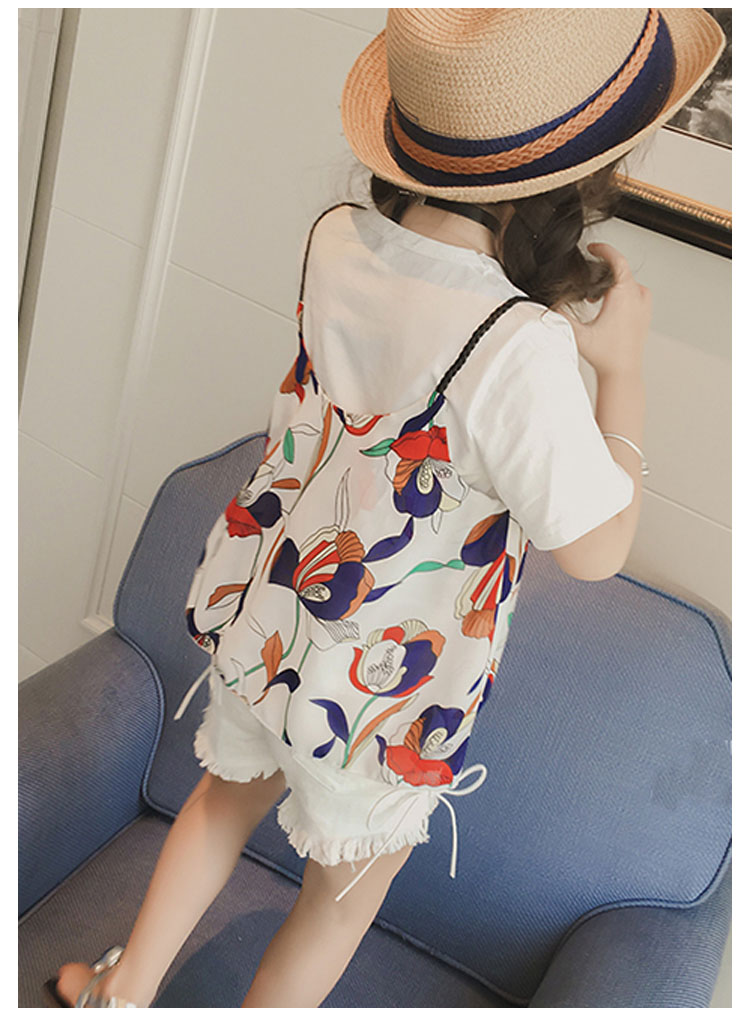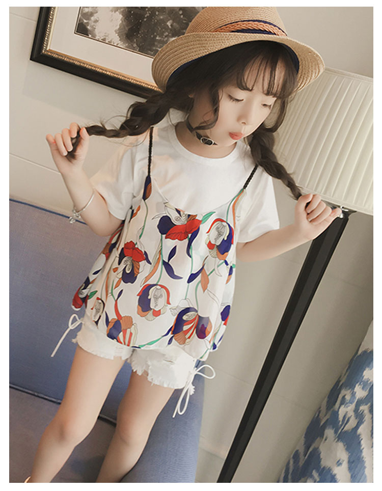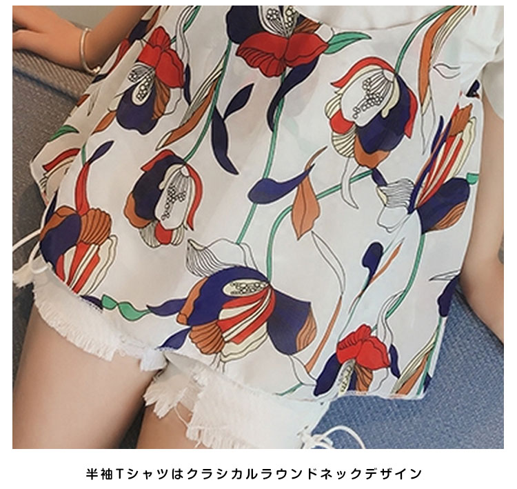 | 大人顔負けの可愛いキャミ付きTシャツ!シフォン花柄キャミソールはとTシャツの組み合わせがリッチな表情◎ショートパンツやスカートなどいろんななボトムスとマッチできちゃう万能さにメロメロ別々になっているから、違うコーデも楽しめるのが嬉しくて、着まわし力抜群 | |