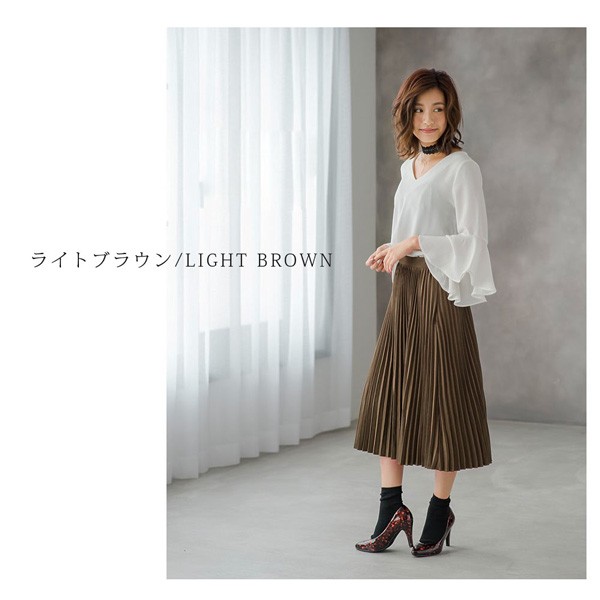 商品名プリーツスカート レディース ボトムス ロングスカート フレアスカート ミモレ丈 ピーチスキン