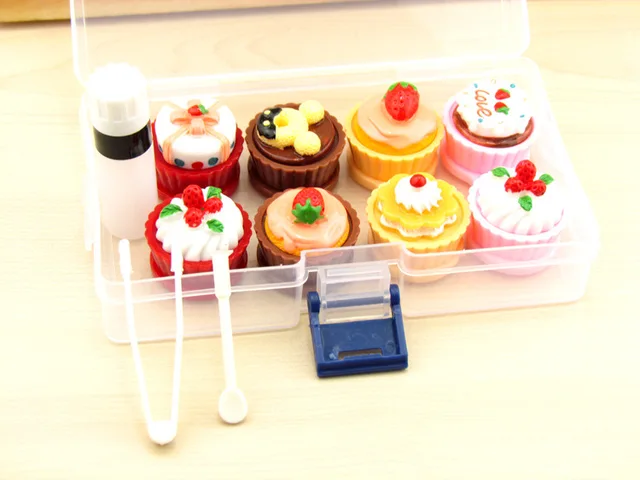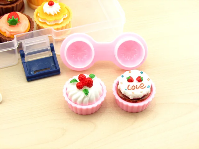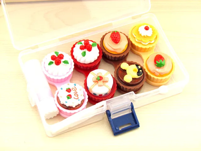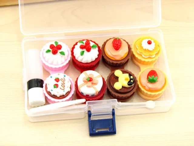 | [해외] LIUSVENTINA DIY 귀여운 초콜릿 케이크 콘택트 렌즈 케이스 눈 콘택트 렌즈 상자 안경 안경 케이스 |