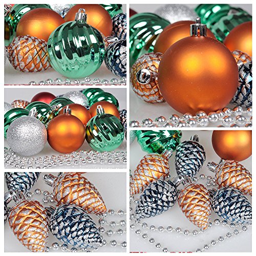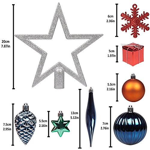 - Suits for 4-7 ft trees. This tree decorations set includes diffierent sizes and shapes tree ornaments, making it perfect to add variety and depth to your Christmas tree design.