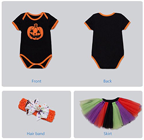 -. Feature : Package Included: 1*Romper; 1*Headband; 1*Skirts; / bodysuit in "My 1st Halloween" desig, Baby girls lovely romper, has short sleeves and snaps at the bottom / Material:Cotton, Machine wash or hand / Dress lace fabric is very soft for baby / Suitable for Halloween, birthday party, photo prop, holiday or play wear.