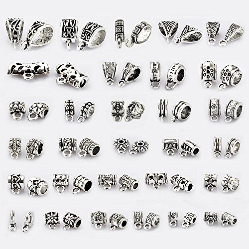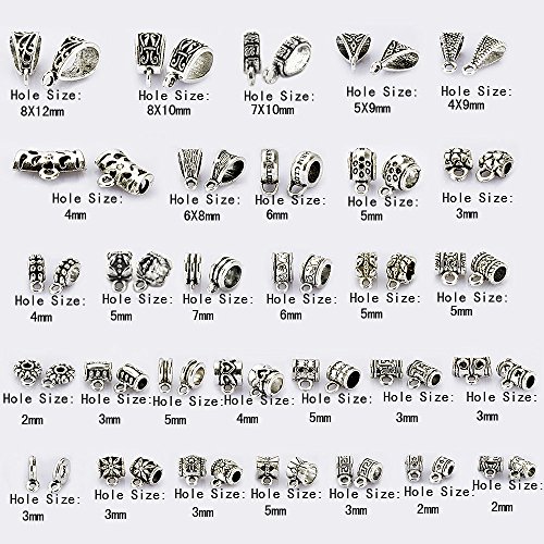 LolliBeads 60Pcs Mix Tibetan Silver Color Connectors Bails Beads fit European Charm Bracelet Pendant