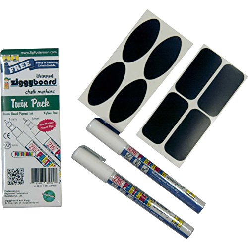 Cohas Liquid Chalk Markers in Twin Pack includes 2 White Waterproof Markers, Extra Fine 0.5mm and Fine 1mm Tip