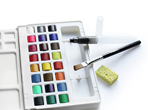 Pablo's Choice 24 Watercolor Paint Set - Water Color Sketch Set with Lightweight Case, Sponge, and Perfectly Shaped Mixing Palette - For Craft or Hobby to Professional, Includes Brush & Pen