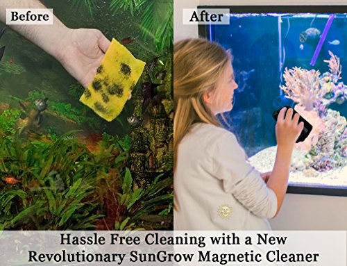 ✔ REMOVES TOUGH ALGAE EASILY --- Magnetic Aquarium Cleaner by SunGrow cleans and scum off the inside of your aquarium in fun and easy way! Super strong, attracting magnets, stick the two parts of the cleaner together through your aquarium's glass. As you move the outer magnet, the inside magnet follows, hence cleans the glass and removes even the most stubborn algae easily.