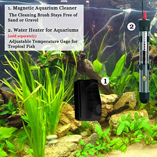 Aquarium Magnetic Glass Cleaner -- Strong Magnet facilitates easy Algae Removal - Keeps your hands Dry, contamination-free - Floating inside brush stays Gravel-free - Makes for Scratch-Free cleaning