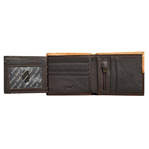 -. Feature : 4 3/8" x 3 3/4" x 3/4" / Genuine Leather / 2 Full Length Bill Fold Pockets / ID Window Slot / 7 Credit Card Slots / 4 Multi-Function Pockets / Interior Zippered Compartment / Antique Brass Cross-Engraved Stud