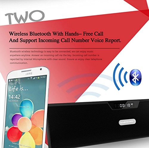 -. Feature : Support:Bluetooth,TF card,USB,FM Radio,Line in,Alarm clock / Support phone redial,Bluetooth remote control 20-25M / It can support music formats: MP3,WMA,WAV,PE,FLAC / High sensitivity FM radio with internal antenna / Support Hands-free when answer calling (with MIC)