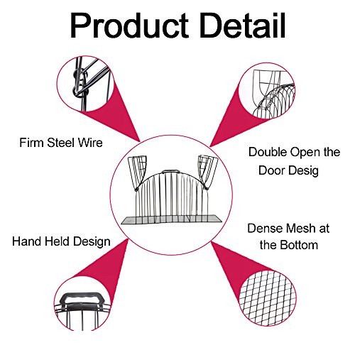 This cat cage is made of high quality steel wire, firm, anti-rust and durable. Dense Mesh at the bottom. PORTABILITY: