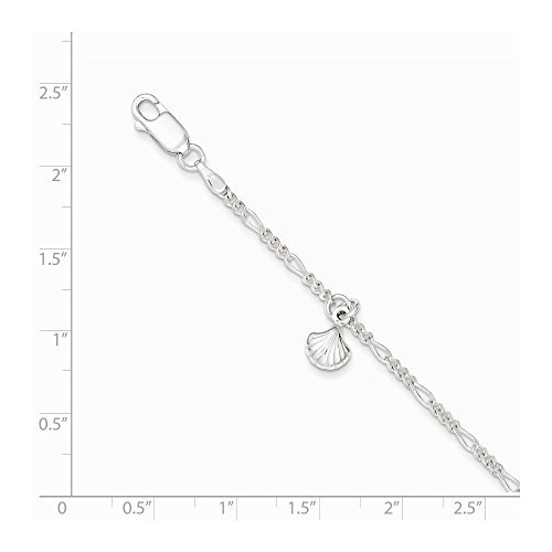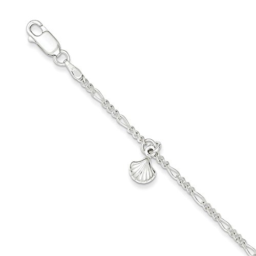-. Title : Genuine 925 Sterling Silver Polished Dangling Sea Shell Anklet Length 9 Inch w/ 1in ext. Lobster Clasp