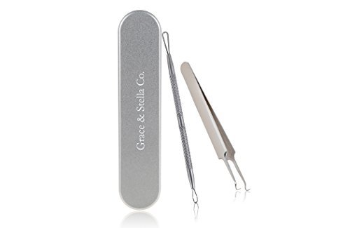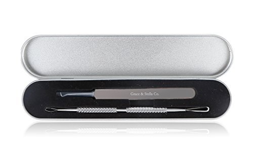 -. Title : Professional Blackhead Remover Tool Kit - Stainless Steel - Comes with 1 Curved Needle Tip Tweezer & 1 Looped Double-End Extractor - For Removal of Blackheads, Comedone, Acne, Pimple, Zit