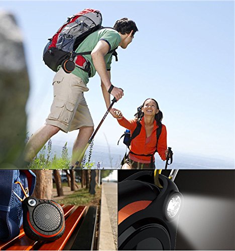 -. Title : Accmor Mini Wireless Waterproof Speaker with Mic Built-In Flash-light & Thermometer, Outdoor Speaker for Outdoor Survive,5W Shower Speaker (Orange)