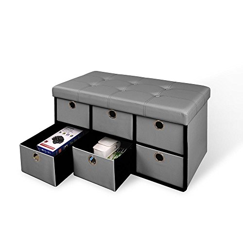 -. Brand : Generic -. Color : GrayBlack -. EAN : 0792405380381 -. Feature : Perfect for storage and extra seating / Stylish design with drawers for additional storage / Collapsible design, folds flat when not in use / Adds style and functionality to any room in your home / Maximum weight capacity 250 lbs.. Assembled dimension: 29.92 x 14.96 x 14.96"J -. Label : Generic -. Manufacturer : Generic -. Model : 66114 -. ProductGroup : Kitchen -. ProductTypeName : KITCHEN -. Publisher : Generic -. Studio : Generic -. Title : Gray Folding Storage Bench with Drawers -. UPC : 792405380381