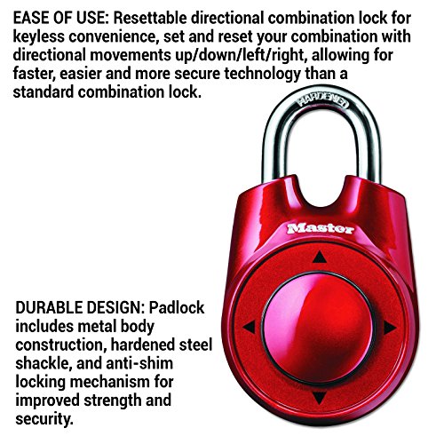 - EASE OF USE: Resettable directional combination lock for keyless convenience, set and reset your combination with directional movements up/down/left/right, allowing for faster, easier and more secure technology than a standard combination lock