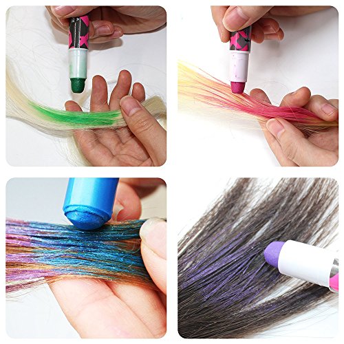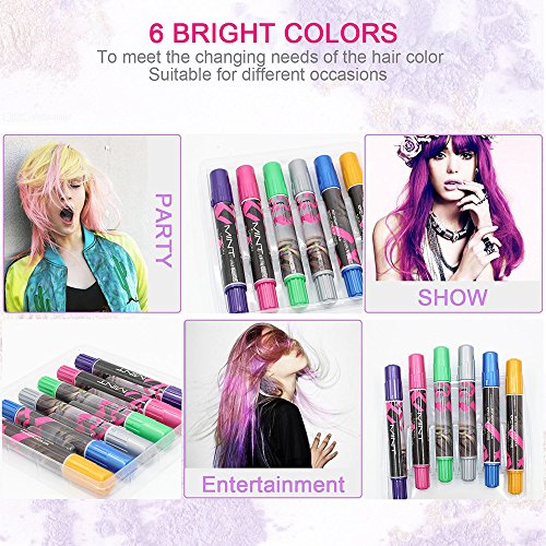 6 Colors Hair Dyeing Chalk Set- Metallic Glitter Nontoxic Temporary Hair Coloring Crayon Waxy Pen - No Mess Works on All Hair Colors by “wonder X”