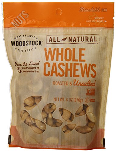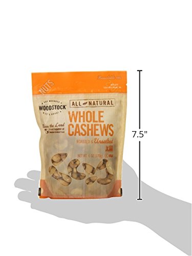 -. Title : Woodstock Natural Whole Cashews, Roasted and Unsalted, 6 Ounce