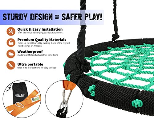 ⇒ NEW IMPROVED FOR SUMMER 2017 WITH TWO HANGING STRAPS AND SWING UPGRADES Now you can have a great time swinging around with this super large outdoor kids swing! The extra durable round steel pole is carefully padded and has a 40 inch diameter so your kids swing seat will have enough space for all the family and friends to enjoy! ⇒ ENDLESS HOURS OF FUN PLAY OUTDOORS What better way to spend warm days than outside in the garden feeling the wind on your face as you and your children swing through the air. As a health conscious parent we know you want them to enjoy some exciting outdoor play instead of glued to the TV or computer screen! ⇒ SWING MOUNTING HARDWARE INCLUDED This is one of the only child swing that includes TWO SWING HANGING STRAPS and swing caribiner. Install the tree swing kit safely to an existing playground swing set or hang from a tree branch and swing outdoor. Why not join in with the kid swing-in fun too? This heavy duty swing is for adults too. ⇒ With our famous Trailblaze Lifetime Warranty money back guarantee there is nothing to lose - if this high quality tree swing for kids doesn’t meet your expectations get a full refund on your purchase. Grab Your Very Own Swing Platform Now Before We Run Out of Supplies! 0 |