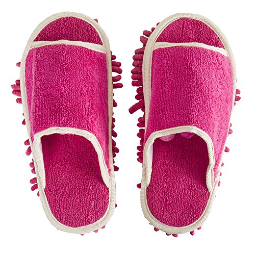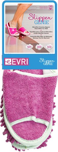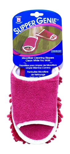 Get more done around your home with this pair of Slipper Genie microfiber cleaning slippers in pink for women, which allows you to keep your hard floors clean while simply walking through your home. Perfect for wood, tile, and vinyl floors, these slippers feature fluffy microfiber fingers on the soles that grab dog hair, gather dust bunnies and collect dirt. And because of their size and shape, these slippers can go where a broom or mop might not reach. A Velcro fastener attaches the cleaning cloth to the slipper, and it can be easily removed from the slipper to shake dust and dirt off before more cleaning. One size fits most. For use only on dry floors. Machine washable. Made in China. 0 |