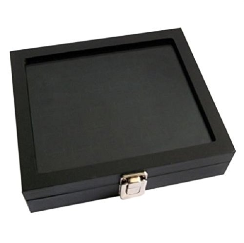 -. Feature : Red stackable wooden tray with glass top / Black / Measures 8 1/4" x 7 1/4" x 2 1/8" / Black velvet tray liner / Measures 7 3/4" wide by 6 3/4" long. Holds 36 rings