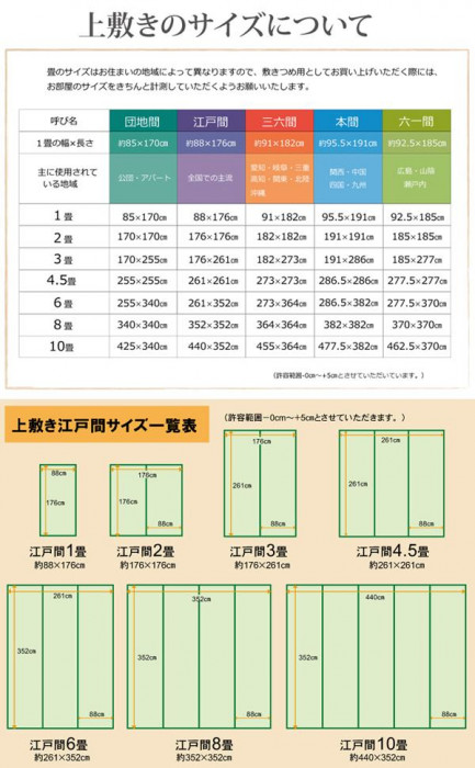fk094igrjs上敷きを敷くだけで畳のお部屋をリフレッシュ出来ます日焼けしてしまった畳のリフレッシュに、新品の畳を汚さないためのカバーにご使用下さい サイズ 江戸間8畳(約352×352cm) 個装サイズ:50×90×15cm 重量 個装重量:6600g 素材・材質 い草(九州産) ヘリ:ポリプロピレン、ポリエチレン 生産国 日本 畳のお部屋をリフレッシュ 上敷きを敷くだけで畳のお部屋をリフレッシュ出来ます日焼けしてしまった畳のリフレッシュに、新品の畳を汚さないためのカバーにご使用下さい