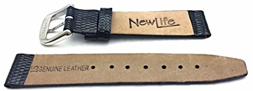 -. Title : 15mm Short Length, Round Lizard Grain, Flat, Black Leather Watch Band