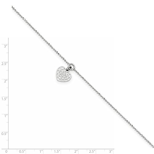 -. Title : Sterling Silver With Heart Charm W/.5inch Extension Anklet - 10 Inch