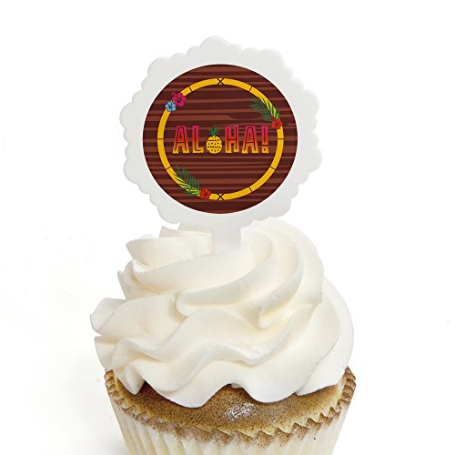 Tiki Luau - Cupcake Picks with Stickers - Tropical Hawaiian Summer Party Cupcake Toppers - 12 Count