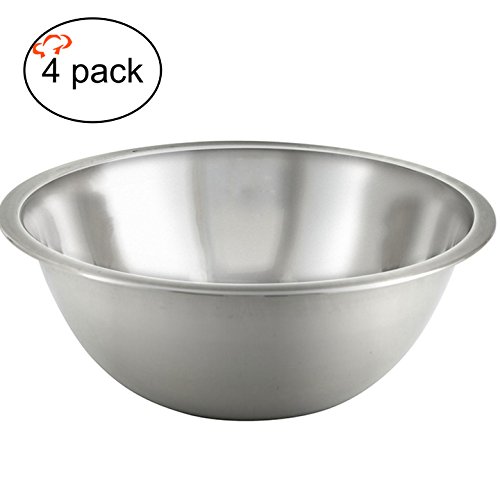 TigerChef TC-20514 Heavy Duty Mixing Bowl for Home and Commercial Use, Best Prep Bowls for Cake Mixtures, Dough’s, Pastas, Dressings, Stainless Steel, 1-1/2 Quart (Pack of 4)