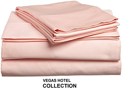 VEGAS HOTEL COLLECTION Crispy Egyptian Cotton Sheets, 400-Thread-Count, 4-PCs Solid Sheet Set With 15 Inch Super Deep Pocket ( Queen, Peach )