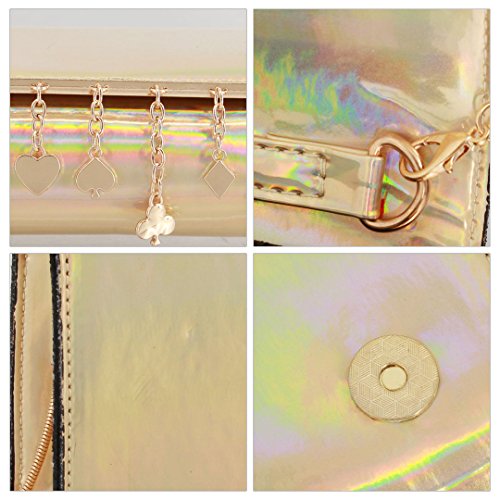 Liliam Women Girls Shiny Holographic Shoulder Crossbody Evening Bag Clutch Handbag for Party Prom