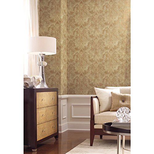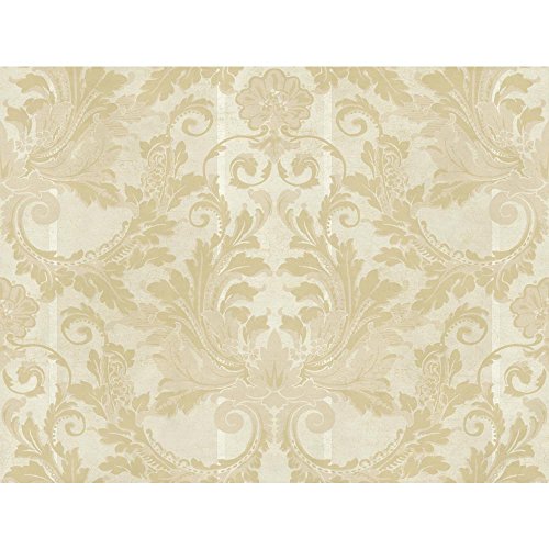 -. Title : York Wallcoverings GF0791 Gold Leaf Aida Damask W/Stripe Wallpaper, Cream Satin, Off-White, Palest Yellow, Beige