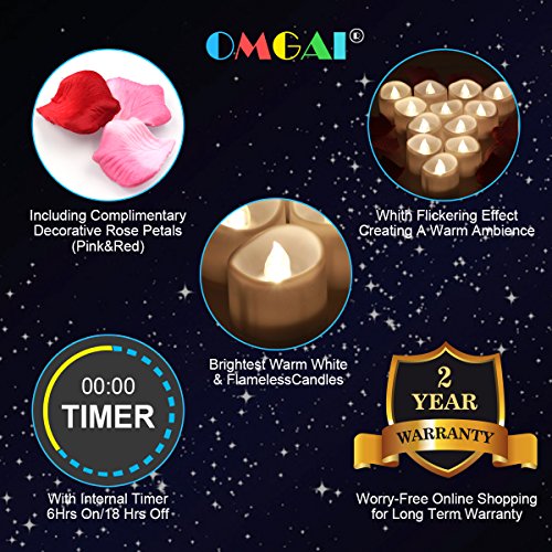 - ★ A MULTITUDE OF USES - The OMGAI Tealight Flameless Candle can be used anywhere to achieve a persistent and atmospheric ambience.The Tealight Flameless Candles can be used in votive holders, placed on dining tables for a romantic dinner, they can be placed on the windowsill for a hearty Christmas decoration, stuffers, Valentines or they can be used in a restaurant for safe and hazard free flickering candle lights on every table